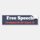 Esta pegatina para el parachoques independiente dice que el "discurso libre la protege o que la pierde"