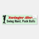 ¡Ríe con esta pegatina irresistible del parachoques de golf "Swinger Alert"! Perfecto para coches de golf, coches o decoración de discoteca. Presenta vinilo duradero y resistente al tiempo que no se desvanecerá ni se pelará. Excelente regalo para los amigos del golf o bolsos de oro para torneos. [Texto de ALT: Hilarious "Swinger Alert" pegatina al parachoques de un juego de palabras, calcomanía de vinilo a prueba de meteorología para coches y coches de golf]