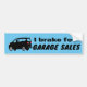 ¡Atención! ¡Freno por VENTAS GARAGE! Sólo una cortesía para que sus compañeros de conductores sepan que están en camino a hacer algunas compras de Garage Sale. Con suerte, conseguiremos la última pieza coleccionable que estabas buscando. O encontrar algunos libros para decorar, algunos usados pero aún sorprendentes adornos navideños o esos extraños muros que siempre son tan abundantes. Elija su color favorito para un fondo en lugar de nuestro pegatina azul. ¿Qué tal un color que coincida con tu auto? ¡Un parachoque grita!