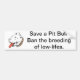 Muchos condados en los Estados Unidos han prohibido la cría de toros de foso. Esta pegatina del parachoques expresa lo que los entusiastas del pit bull piensan de la prohibición.