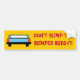 Fondo amarillo con la parte trasera de un camión azul. Tiene las palabras "¡¡No golpees al amigo parachoque!!" Genial para cualquiera que no le guste que otros vehículos cierren.