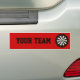 Un tablero gráfico sobre la pegatina del parachoques. La pegatina del parachoques tiene el texto del personalizable Su equipo.