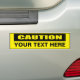 Una etiqueta adhesiva del parachoques de signo de precaución con el texto "Precaución" y una plantilla para el texto.