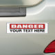 Una pegatina del parachoques de señas de precaución con el texto "Peligro" y una plantilla para su texto.