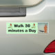 El mensaje de "caminar 30 minutos al día" con una obra de Kikuchi Keigetsu de 1934 titulada "dar un paseo" que representa a una mujer caminando dos perros
