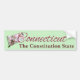 Hojas verdes y flores en forma de estrella cautivadoras, acentuadas con distintivas manchas de color burdeos; el Laurel de Montaña es uno de los arbustos florecientes más hermosos nativos de Estados Unidos. También conocido como ivybush, laurel de oveja, arbusto de calico, lambkill (porque las plantas son bastante tóxicas, especialmente para los animales pequeños), cloro y madera de cuchara (porque los nativos americanos hacían cucharas de la madera). Las flores de laurel representan ambición, éxito y fama. Aunque parecen muy similares, hay una gran diferencia entre Mountain Laurel y Bay Laurel (que se utiliza para cocinar y hacer las famosas y audibles coronas). A diferencia de Bay Laurel, prácticamente todas las partes de la Montaña Laurel son venenosas tanto para los humanos como para los animales. También la Flor Estatal de Pensilvania, Mountain Laurel ofrece una impresionante exhibición floral en mayo y junio con flores en rosa, blanco y rojo. Pero este diseño no es solamente un tributo a esta impresionante flor, también rinde homenaje a nuestro quinto estado, Connecticut. De los 50 estados, Connecticut es la 48ª más grande . ... o la tercera más pequeña de la unión. Para un estado que, TÉCNICAMENTE, no está en el océano (Long Island Bay es en realidad un estuario), Connecticut tiene una rica historia marítima y un asombroso museo marítimo en Mystic. Aunque el apodo oficial es "El Estado de la Constitución", Connecticut también se conoce como "El Estado Nutmeg", "El Estado de las Provisiones" y "La tierra de los hábitos estables". Las finanzas y los seguros son las industrias más grandes de Connecticut; tal vez no sea tan sorprendente como también el lugar de nacimiento de Charles Dow, el fundador del Wall Street Journal y Dow Jones Y J. P. Morgan, financista y filántropo. Por supuesto, también es el lugar de nacimiento, entre otros, del ex presidente George W. Bush, Katharine Hepburn, Meryl Streep y Noah Webster, como en el Diccionario de Webster. Este encantador diseño, que celebra la 5ª incorporación a los Estados Unidos, ofrece un esquema del estado de Connecticut, lleno de su flor estatal, la hermosa Mountain Laurel. Esto está enlosado con el rosado coordinador "Connecticut" y anclado con un profundo borgoña "El Estado de la Constitución". Esta encantadora pegatina de parachoques es apropiada para la venta en las tiendas de recuerdos de Connecticut y también es un maravilloso recordatorio de sus memorables vacaciones en Connecticut.