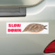Una babosa de color marrón y jengibre resbalando a través de una pegatina de parachoques blancos, seguida de cerca por las palabras que disminuyen en la escritura roja audaz. Este es un giro totalmente original en el tema de la seguridad vial.