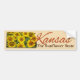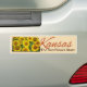 Kansas lleva el nombre de la tribu Kansa Native American, que originalmente habitó la zona. Aunque el apodo oficial es "El Estado Girasol", Kansas también se llama "El Estado Libre" y "El Estado Trigo". En 2015, Kansas era uno de los estados agrícolas más productivos del país, produciendo altos rendimientos de trigo, maíz, sorgo y soja. La aparición más famosa del estado en la literatura fue como el hogar de Dorothy Gale, el personaje principal de la novela "El Maravilloso Mago de Oz". Cuando Dorothy dijo: "No hay un lugar como el hogar", se refería a Kansas. "Little House on the Prairie" de Laura Ingalls Wilder, publicado en 1935, es otro conocido relato sobre Kansas. Incluso se dice que Superman proviene de Kansas. ... ... de la ciudad ficticia de Smallville. Los restaurantes Pizza Hut abrieron su primera ubicación en Wichita, Kansas. El glorioso girasol es la flor oficial del estado, y es tanto un cultivo como un ornamental. Los girasoles son nativos de las Américas. Históricamente, se han utilizado para la medicina, el tinte, los alimentos y el petróleo. En el escenario de la cresta, los girasoles exhiben un rasgo único llamado heliotropismo, con el que el brote del girasol se enfrenta al sol en todo momento durante todo el día, comenzando el día mirando hacia el este y terminando hacia el oeste. No todos los pétalos de girasol son amarillos. Hay más de 60 variedades de girasoles que viven en todo el mundo —algunas de estas variedades tienen pétalos rayados. Algunos girasoles también tienen diferentes matices interiores. Este espectacular diseño rinde homenaje a nuestro hermoso estado número 34 y a la increíble flor que honra. Un contorno del estado está lleno de hermosos girasoles. Esto está emparejado con el naranja de calabaza "Kansas" y, con un guiño a su fértil tierra, anclado en un profundo y terrenal "Estado girasol". ¡Esta encantadora pegatina de parachoques es un excelente recuerdo de sus maravillosas vacaciones en Kansas!