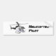 Una pegatina del parachoques que dice "Piloto de helicópteros" y que contiene un helicóptero de luz blanco y negro.