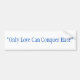 Bumper Sticker dice: "Sólo el amor puede conquistar el odio"