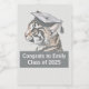 Etiqueta alimentaria con un tema de graduación. Diseño de tigres con un mensaje de celebración que se puede personalizar. Utilice la plantilla para personalizar.
