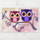 Un par de búhos kawaii se posan en una rama torcida