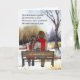 Una invitante escena campestre nevada es observada por una dulce joven pareja en un banco en esta tarjeta de acuarela con un mensaje romántico para su esposa en Navidad.