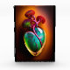 "The Heart Beats" es un moderno y artístico bloque acrílico de arte digital con un colorido corazón de vidrio verde azulado anatómico con venas magenta, creado con software de generación de IA. Mostrar en escritorios, librerías o estantes flotantes.