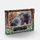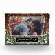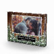 Bloque de vidrio superpuesto de foto boda. Madera rústica marrón, fondo de nieve y bosque nevado. Acogedor estilo rústico vintage. Hay más artículos disponibles en este estilo en nuestra tienda. Puede editar el diseño más adelante, cambiar colores, fuentes y añadir texto extra haciendo clic en el enlace "personalizar más adelante".