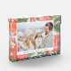 Muestra un atesorado recuerdo de las vacaciones con nuestra moda y elegante bloque de fotos. Tu foto horizontal o orientada al paisaje está enmarcada en blanco y rodeada de flores de peón rojo color agua pintadas a mano y follaje verde. Personalice con su título y/o nombres de personalizado.