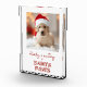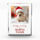 ¿Quién tiene el más lindo pooch? ¡Tú lo haces! Es fácil crear un lindo y memorable aguafiestas personalizado con una foto de tu amigo. Tipografía roja festiva sobre fondo blanco de nieve. Palabras: "Listo + esperando las patas de Santa"