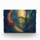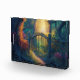 Este elegante bloque acrílico presenta una imagen de arte digital generada por IA de una mágica puerta de jardín forestal con rayos solares en el fondo.