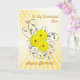 Una magnífica tarjeta de cumpleaños con flores de margarita amarillas sobre un vibrante fondo giratorio.