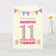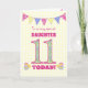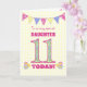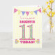 Una tarjeta de cumpleaños número 11 de bonito para tu hija, con un racimo de puntos de polka, flores de primrose y números rellenos con un patrón de primrose, todo sobre un fondo de gingham amarillo pálido. El mensaje de la portada es: '¡A una HIJA muy especial hoy!' El mensaje interno es sólo una sugerencia y puede personalizarlo o eliminarlo fácilmente si lo prefiere.