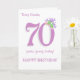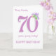 Una tarjeta de cumpleaños número 70 de la moda para tu primo con un aspecto vintage. El mensaje de portada es: "¡A mi primo 70 años, joven hoy! FELIZ CUMPLEAÑOS, en la parte superior del número '0' hay un rociado de flores de verano perfumadas, Rosa de Albertina, Lavender y Naranja de la Maqueta (Filadelfia), en el que se colocan los tonos con todas las letras, de un color malva claro rosado. Por favor, siéntase libre de personalizar el mensaje interno si lo desea.