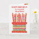 Puedes añadir la edad a esta tarjeta de cumpleaños de colores vivos para tu hermanastra, con un pastel de cumpleaños de fresa. La tarta tiene muchas velas con diferentes motivos y hay una banda estampada alrededor de la tarta con coloridas frutas de verano: fresas, frambuesas, limas y rodajas de naranja. Encima de la tarta, el saludo, con letras rojas, es "FELIZ CUMPLEAÑOS para una hermanita muy especial" y en la tarta hay un espacio para añadir la edad, seguido de "¡los años de hoy!" con letras blancas. Por favor siéntase libre de personalizar del mensaje interno si lo desea; puede cambiar el tipo de letra y el color, así como el mensaje.