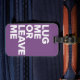 ¡Esta etiqueta del equipaje la dice toda! ¡Arrástreme o déjeme! Características del este diseño divertidas una fuente blanca de sans serif con un fondo púrpura.