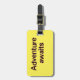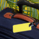 Etiqueta del equipaje amarillo con palabras de marrón.