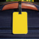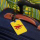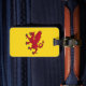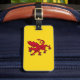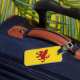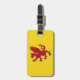 Etiqueta del equipaje con diseño con una bandera del histórico condado de Somerset, en Inglaterra, Gran Bretaña; bandera amarilla con el ilustracion de un dragón rojo en el centro