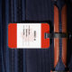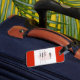 Una buena manera de complementar tu equipaje. Simplemente haga clic en "personalizar" para agregar su información. La imagen muestra la parte delantera y trasera de una etiqueta.