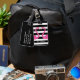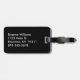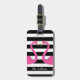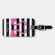 Esta etiqueta de equipaje tropical está decorada con flamencos de besos de fucsia en un fondo de rayas blancas y negras y personalizada con el nuevo apellido Mrs. en la parte delantera, y toda su información personal en la parte trasera, lo que la hace perfecta para su luna de miel.