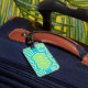 Para Maletas Cal, aguamarina, etiqueta rayada blanca del