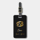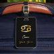 Elegante etiqueta de equipaje con signo de cáncer de oro sobre fondo negro.