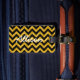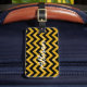 Hip y de moda Chevron Purpurina Look Lumaletas Tag. Esta etiqueta de equipaje genial tiene un patrón de zag de chevron zig encima de un fondo de purpurina amarillo de arte digital. Añadir texto a este diseño para darle un toque personal.