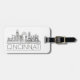 Una etiqueta de equipaje única que representa la hermosa ciudad de Cincinnati, Ohio. Esta etiqueta muestra un estilizado ilustracion del paisaje único de la ciudad con su nombre debajo.