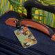 Los exploradores del gato querrán atar esta etiqueta deportiva del equipaje a sus mochilas cuando asisten al Jamboree del explorador del gato.