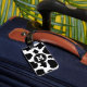 Acobarde el estampado de animales de la granja divertida de la etiqueta el | del equipaje del modelo de los puntos con la letra del monograma. Idea linda del regalo de cumpleaños para los amantes, los vaqueros y las vaqueras de la vaca. Piel del piel de vaca de Personalizable con su nombre, monograma o cita. Diseño blanco y negro de la piel de la piel de la vaca de Blochy. Decoración occidental del tema del viaje.