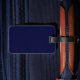 Fondo azul en etiqueta del equipaje