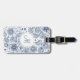 Estampado de flores azul del vintage hermoso y elegante en fondo pálido. Etiqueta sofisticada y femenina del equipaje con el monograma adaptable en el círculo blanco. Usted puede cambiar fácilmente el texto (fuente, tamaño, color y posición), el círculo (tamaño y posición) y el tamaño del diseño floral. Abrigo a juego del equipaje, de la manija del equipaje, tenedor del pasaporte, cubierta del talonario de cheques y más… No olvide la colección entera de estampados de flores del vintage con el monograma.