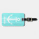 Etiqueta azul turquesa para el equipaje de anclaje náutico. Etiqueta personalizada para bolsas y maletas. Barco con anclaje de barco con tipografía vintage. Elegante idea de regalo marítimo para hombres y mujeres. Nombre del personalizable.