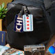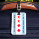 Etiqueta azul y anaranjada de Chicago de Chicago de la bandera del equipaje con la correa de cuero