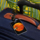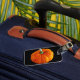 Identifique rápidamente su equipaje con la calabaza anaranjada brillante en fondo negro.