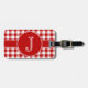 Modelo rojo y blanco de la guinga con la raya a juego y medallón redondo para que usted personalice con su inicial con monograma. Añada su texto de la información o del personalizado en la parte de atrás de la etiqueta del equipaje.