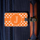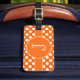Modelo de lunar anaranjado oscuro y blanco con una raya a juego y medallón redondo para que usted personalice con su inicial con monograma. Añada su texto de la información o del personalizado en la parte de atrás de la etiqueta del equipaje.