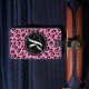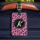Diseño exótico personalizado del modelo de los deportes del animal salvaje del estampado leopardo de la etiqueta con monograma rosada del equipaje con las letras intitial conocidas cones monograma elegantes con clase. Idea elegante del regalo para los hombres, las mujeres y los niños. Rosa de encargo del neón del IE del color de fondo.