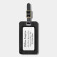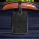 Etiqueta gráfica elegante del equipaje hecha en un modelo negro de la piel del cocodrilo. Los gráficos de un área de texto blanca enmarcada negro, en el frente, tienen texto negro de encargo listo para personalizar. El regalo perfecto para cualquier hombre que viaja.