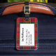 Etiqueta hermosa del equipaje hecha en el modelo colorido de la tela escocesa de tartán de la familia de MacPherson. Un área de texto blanca afilada verde, en el frente tiene texto negro listo para personalizar con su información. La de manera perfecta de manchar su equipaje, y hace una gran idea para un regalo.