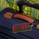 Etiqueta elegante del equipaje hecha en el modelo azul de MacRae del clan, verde, blanco, y rojo colorido escocés tradicional de la tela escocesa de tartán. Un área de texto blanca afilada verde, en el frente tiene texto negro listo para personalizar con su información. La de manera perfecta de manchar su equipaje, y hace una gran idea para un regalo.