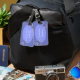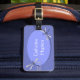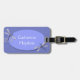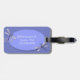 Etiqueta de acrílico elegante del equipaje hecha en azul del bígaro. Los gráficos de las libélulas azules del bígaro adornan el área de texto oval, en el frente y la parte posterior de la etiqueta. El texto blanco de encargo, en el frente y la parte posterior de la etiqueta, está completamente adaptable y listo para personalizar.