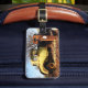 Esta etiqueta personalizada del equipaje se adorna con nuestra fotografía original de un coche viejo del cupé del amarillo del vintage. Fácil personalizar la parte posterior del contacto Info encendido. Todos los derechos reservados © Alan 2019 y Marcia Socolik.